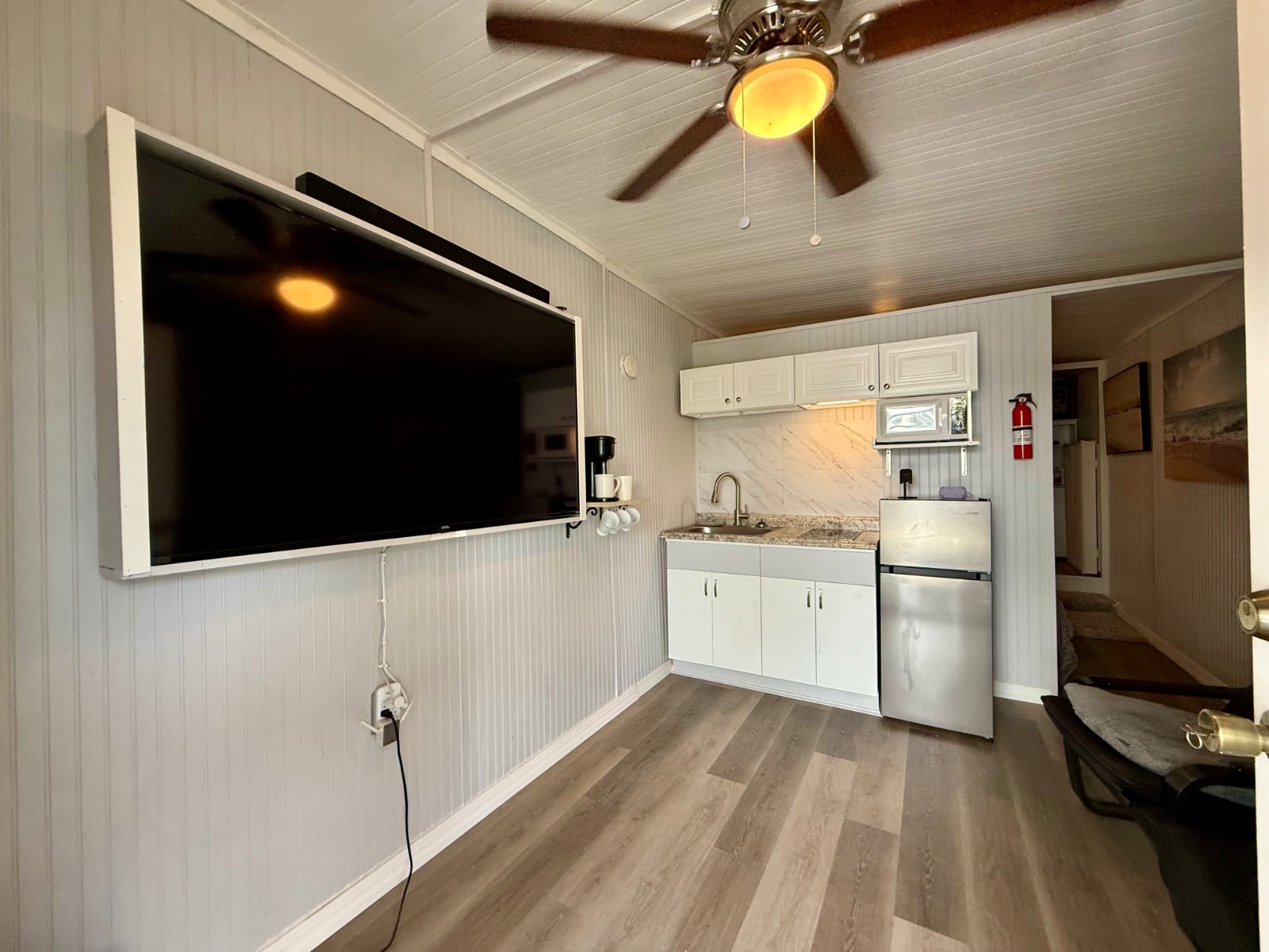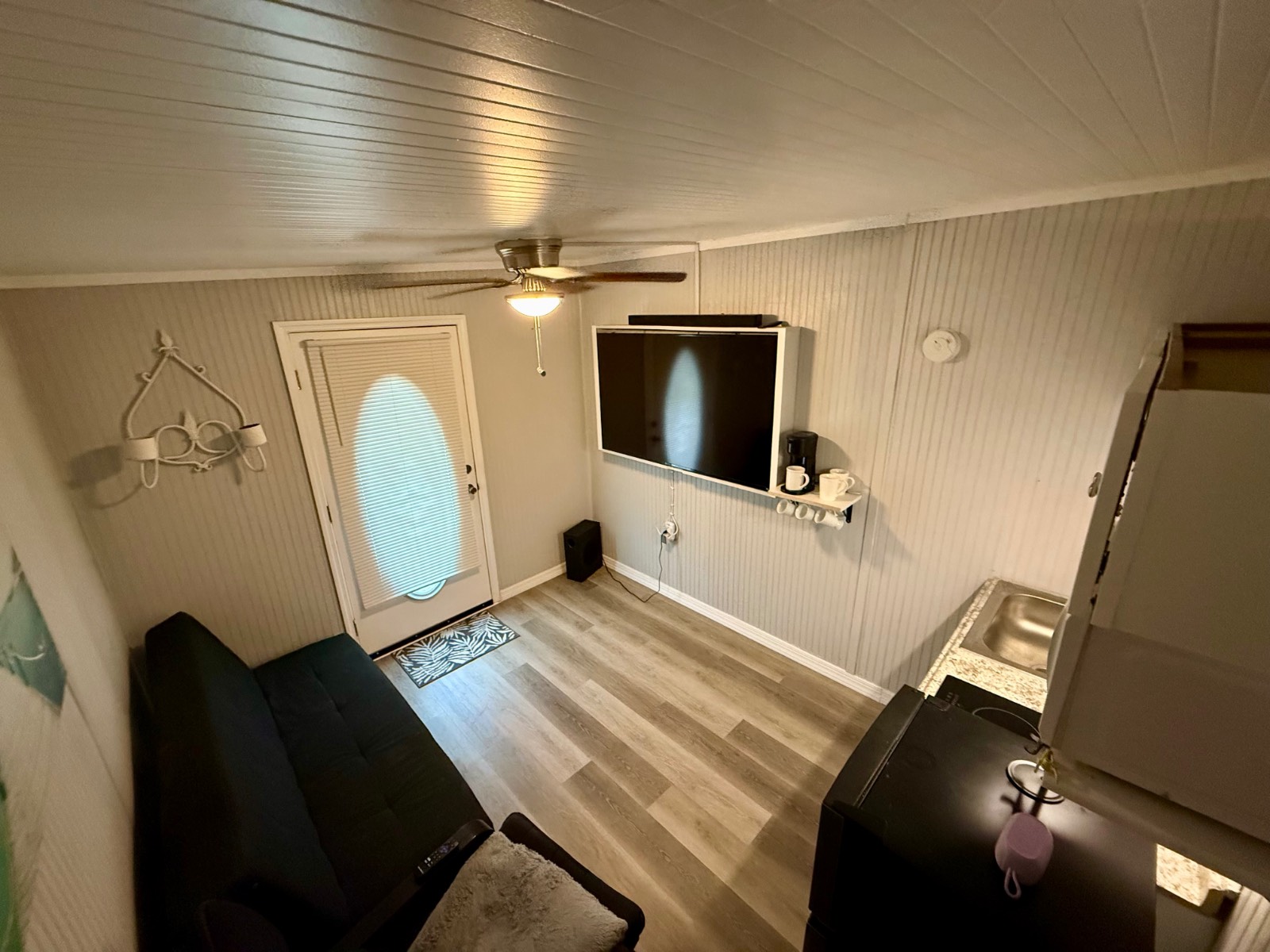 This home has it all, including a brand-new, fully finished separate apartment, perfect for guests, family members, or anyone looking for a little extra space and privacy. The thoughtful layout makes it ideal for two people to live together comfortably, each enjoying their own area while still sharing the same home. Completely renovated and move-in ready, this 1-bedroom, 1-bath home with a spacious bonus room offers over 1,000 square feet of living space. The inviting front living room opens to a cozy eat-in kitchen with two pantries, while the bedroom features two closets, a built-in dresser, and space for a king-size bed. The 12x25 insulated bonus room can easily serve as a second bedroom, family room, office, or entertainment area, the possibilities are endless! Outside, you'll love the charming front porch, deep carport, and 12x12 workshop/laundry room for added convenience. The seller has truly outdone themselves, blending comfort, functionality, and style in one incredible home. Located in a very active, pet-friendly community with plenty of activities and amenities, this property is ready for you to enjoy.