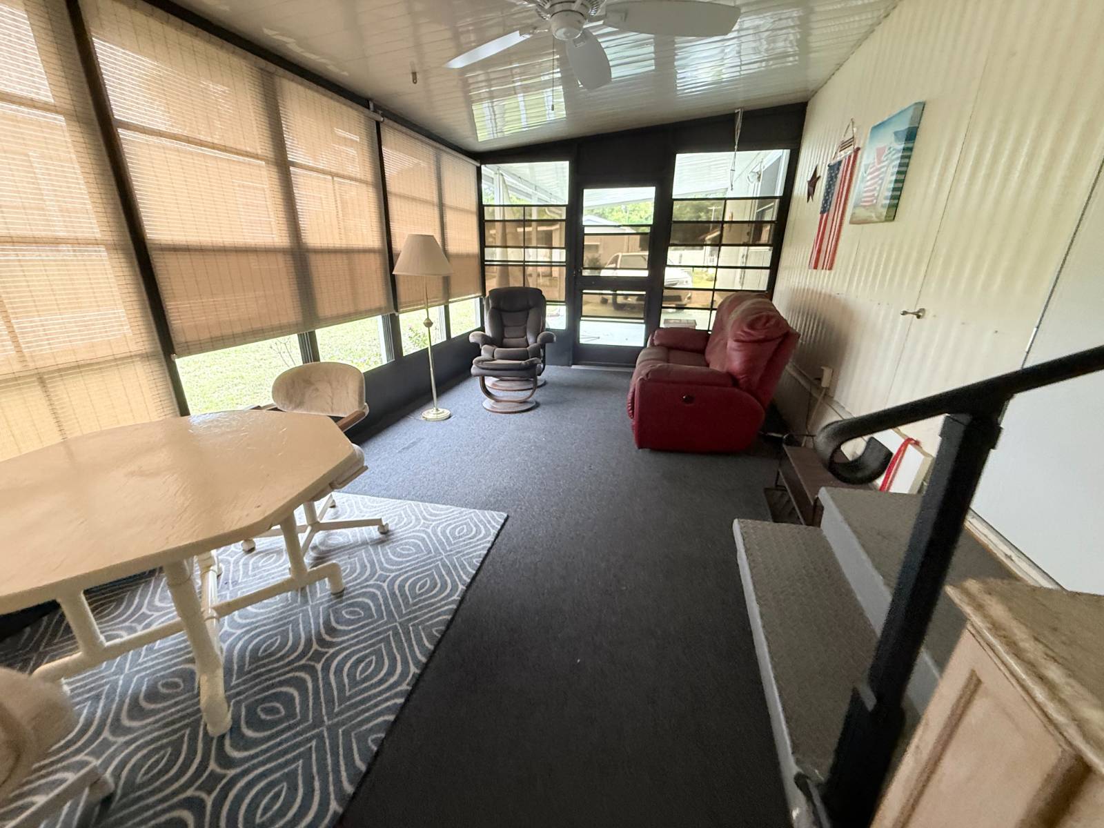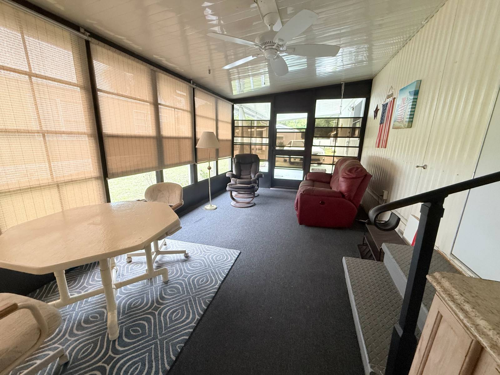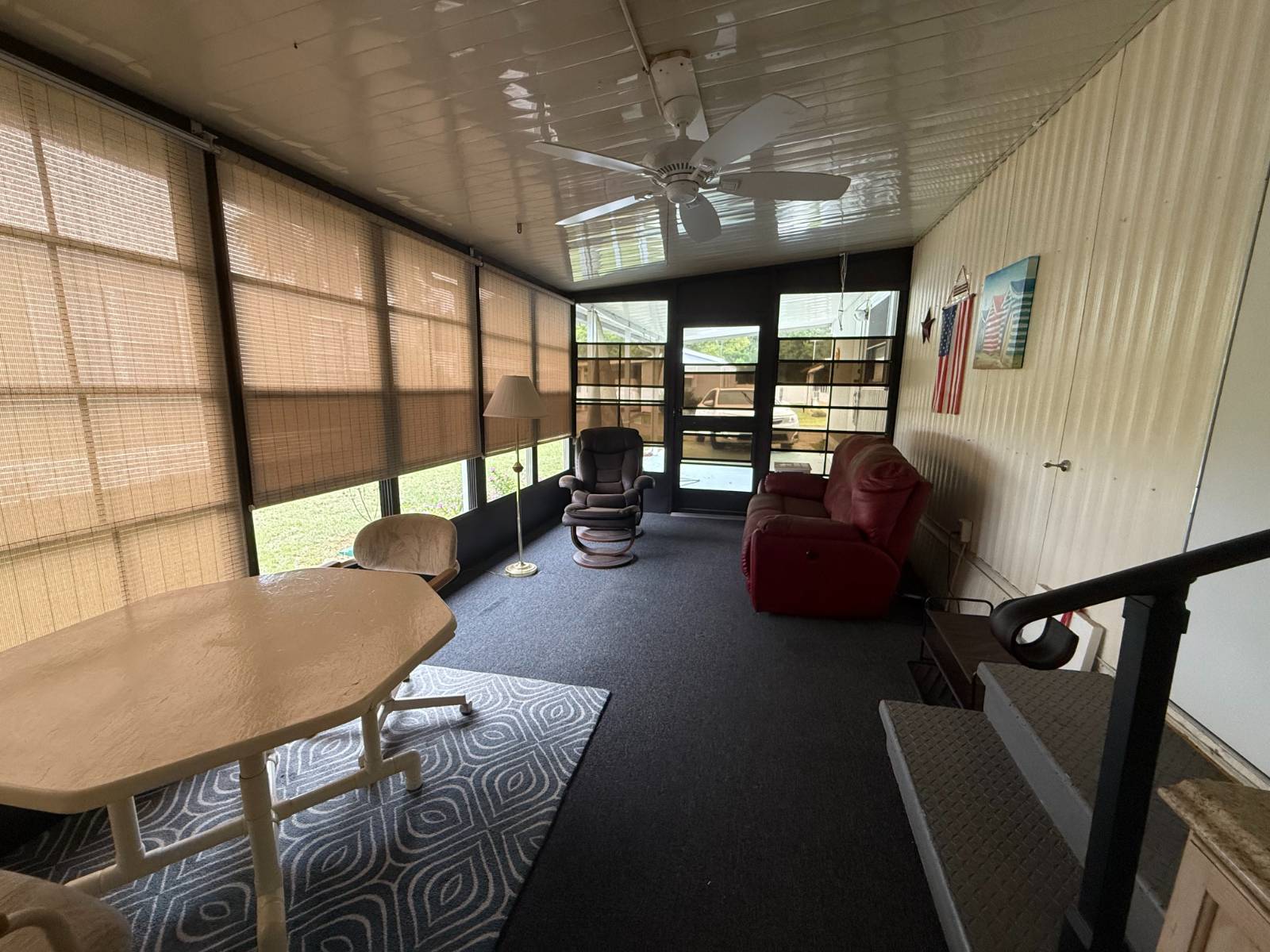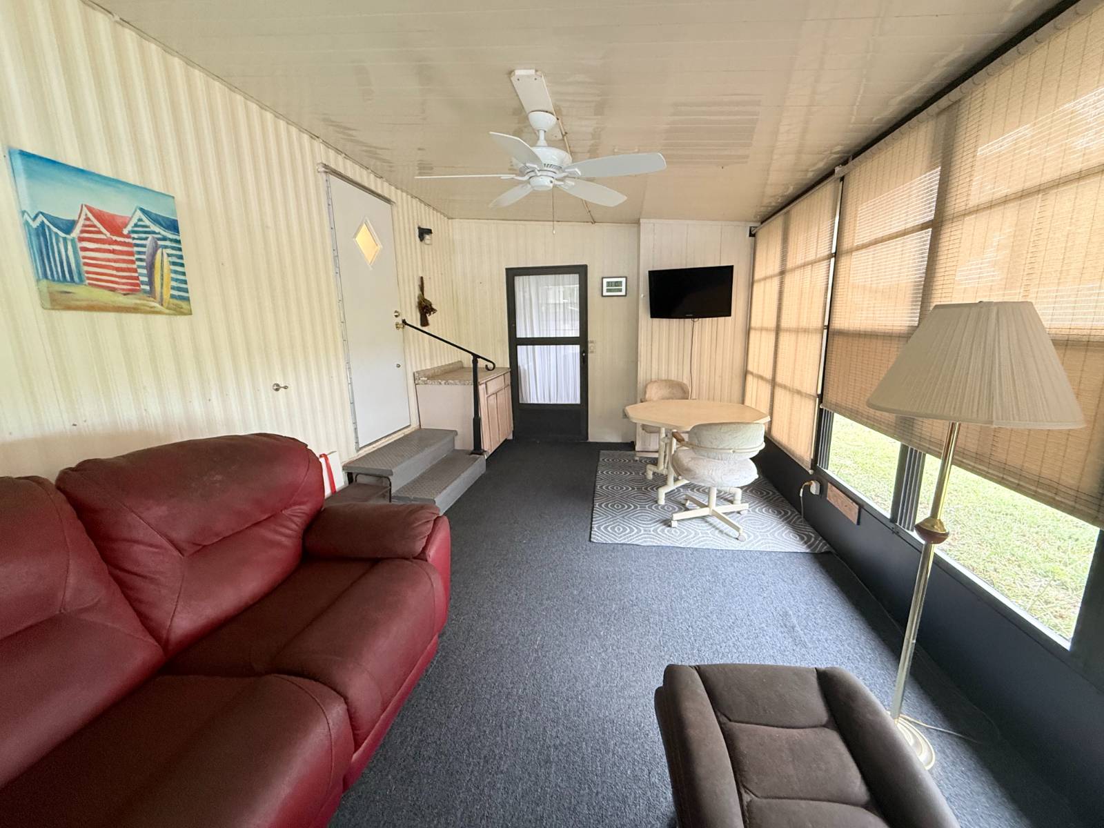 This home has just been significantly reduced to reflect current market conditions - the seller is motivated and ready to move quickly. The price adjustment is an excellent opportunity for buyers and is not due to any issues with the home, which has been well maintained and cared for. The kitchen features new countertops along with a new sink and faucet, plus a convenient water filtration system. The bathroom includes a walk-in shower, and ceiling fans provide added comfort throughout. Energy-efficient double-hung thermal-pane windows and a heat pump HVAC system ensure reliable year-round climate control. Additional highlights include a spacious 300 sq ft lanai for extra living or entertaining space and a 50 sq ft utility room with a washer and dryer. A durable metal roof adds long-term peace of mind. Located in Parkwood Village, a welcoming 55+ community, residents enjoy recreational halls, swimming pools, shuffleboard, and a variety of social activities. Just minutes from The Villages, this home offers comfort, convenience, and now - unbeatable value.