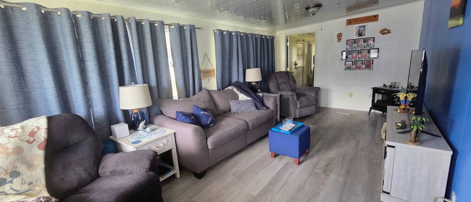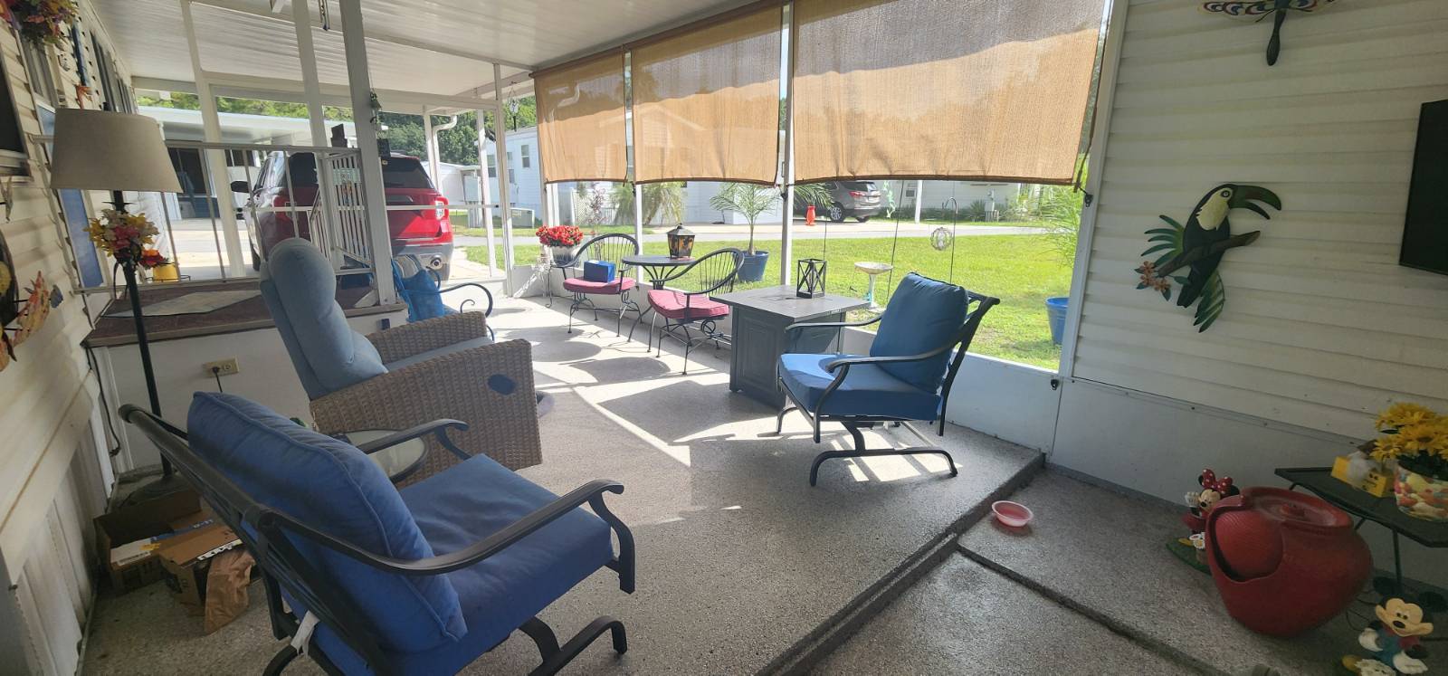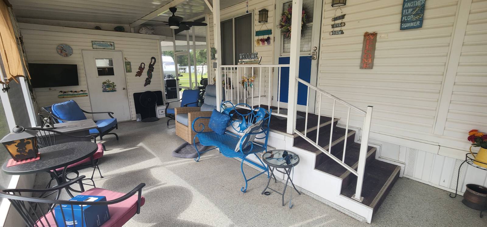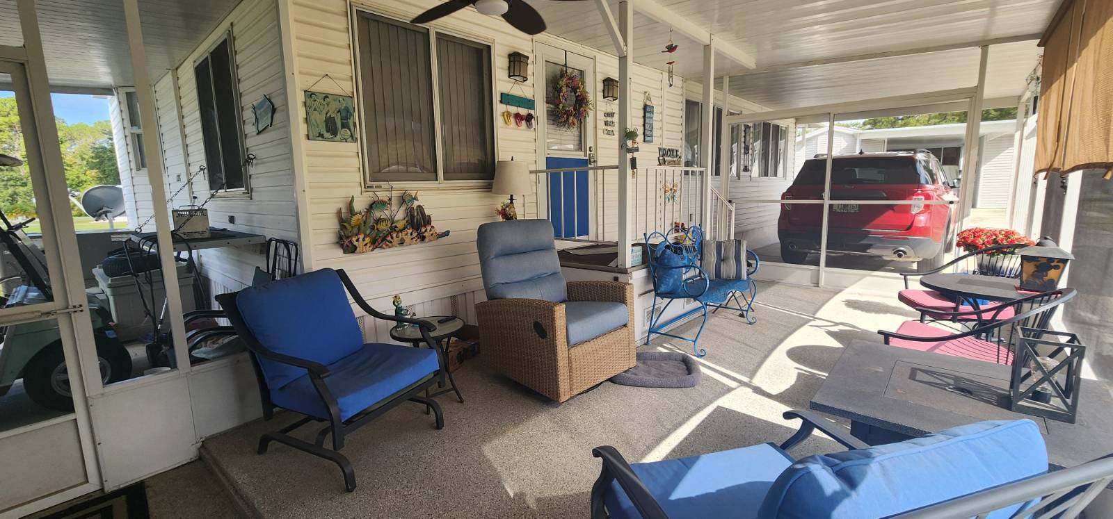 COMMUNITY: Welcome to Holiday RV Village a sought after fun in the sun resort community. 55 plus gated community sitting on 200 acres, complete with 2 pools, private Marina with Chain of Lakes access, planned activities, onsite cafe, pet friendly 2 dog max and a ton of Resort style amenities. Close to Disney, local springs, beaches and many other local attractions. FEATURES: Upgraded LVT flooring, 2021 Central Air unit, New roof 2024, and updated bathroom with step in shower. 14 wide, 11x36 one level addition, 886 square feet. 11x14 bedroom which fits a King, new refrigerator, screen room with double door, 2 carport areas. BENEFITS: Desired WEST 3 side, recent 4 point inspection, newer roof and central ac. Rare find with 14 wide roomy and spacious, coming mostly furnished for an easy move! Indoor laundry and potential area for second bedroom! Lifestyle fee includes water, sewer and trash and is below local average!!!