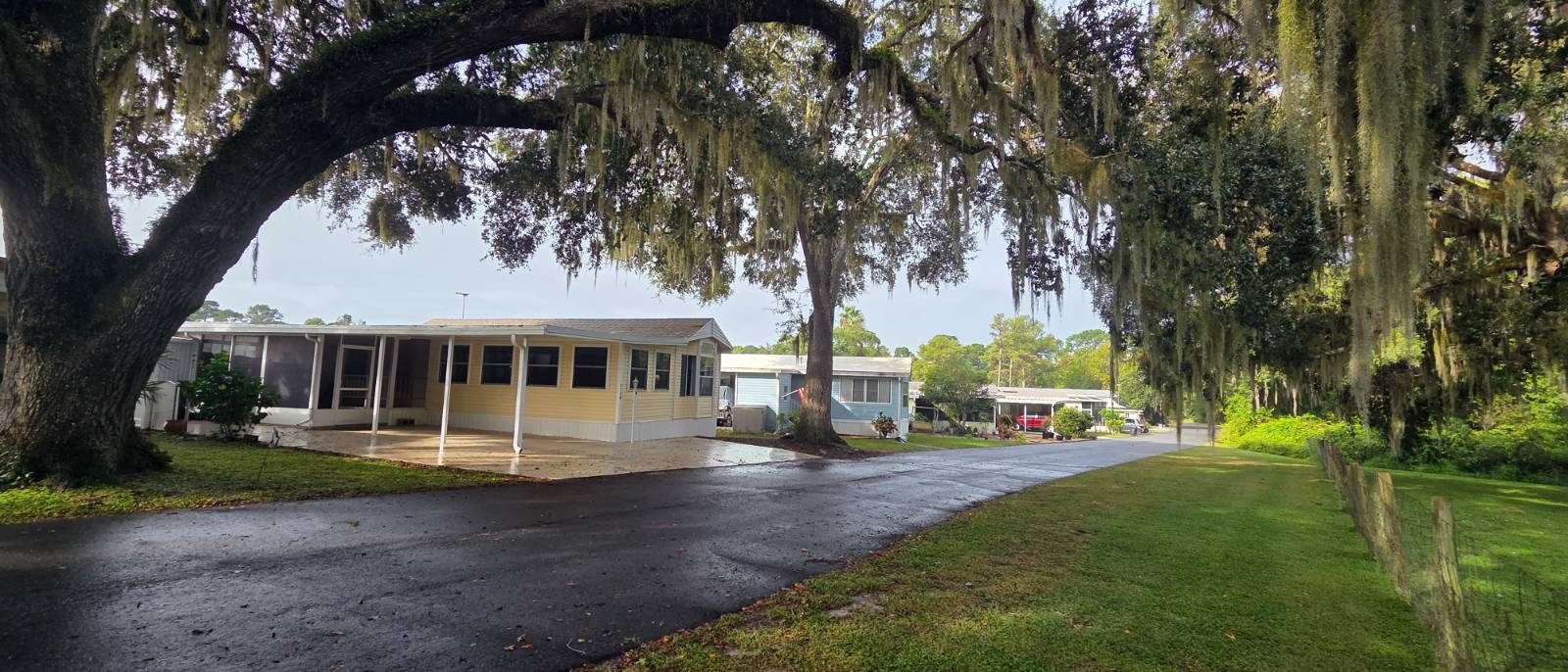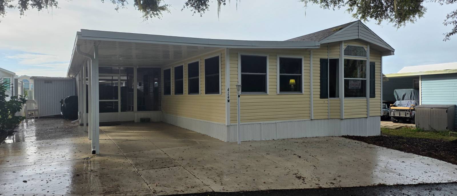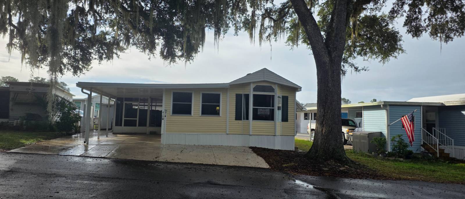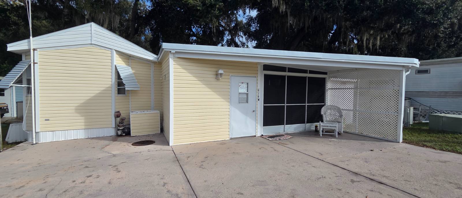 COMMUNITY: Welcome to Holiday RV Village a sought after fun in the sun resort community. 55 plus gated community sitting on 200 acres, complete with 2 pools, private Marina with Chain of Lakes access, planned activities, onsite cafe, pet friendly 2 dog max and a ton of Resort style amenities. Close to Disney, local springs, beaches and many other local attractions. FEATURES: BRAND NEW ROOF over the ENTIRE HOME in 2025! 11x20 carport plus parking in the back, 11x23 screen room with a tri-door, LARGE one level addition, Laundry is indoors in its own separate room. Estimated 914 square feet with potential for second bedroom. Central heat and air 2019. BENEFITS: Desired WEST 3 side on the outer circle, quiet serene setting with a view of untouched Florida across the street. Coming furnished for an easy move! Well maintained by current owners! Lifestyle fee includes water, sewer and trash and is below local average!!!