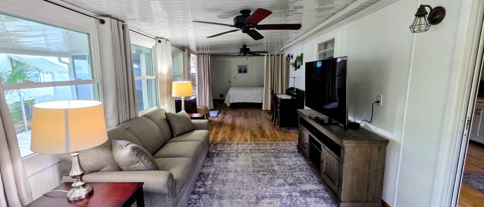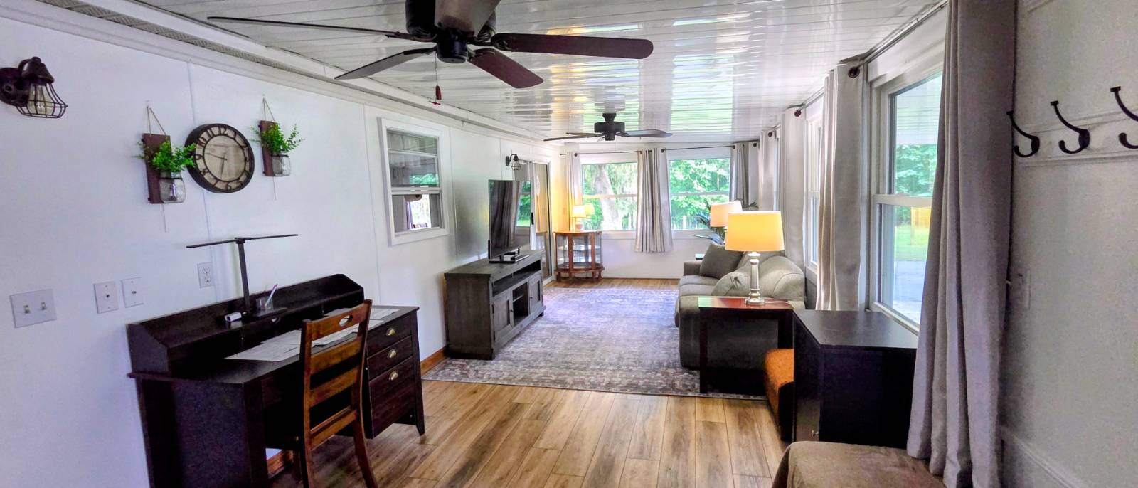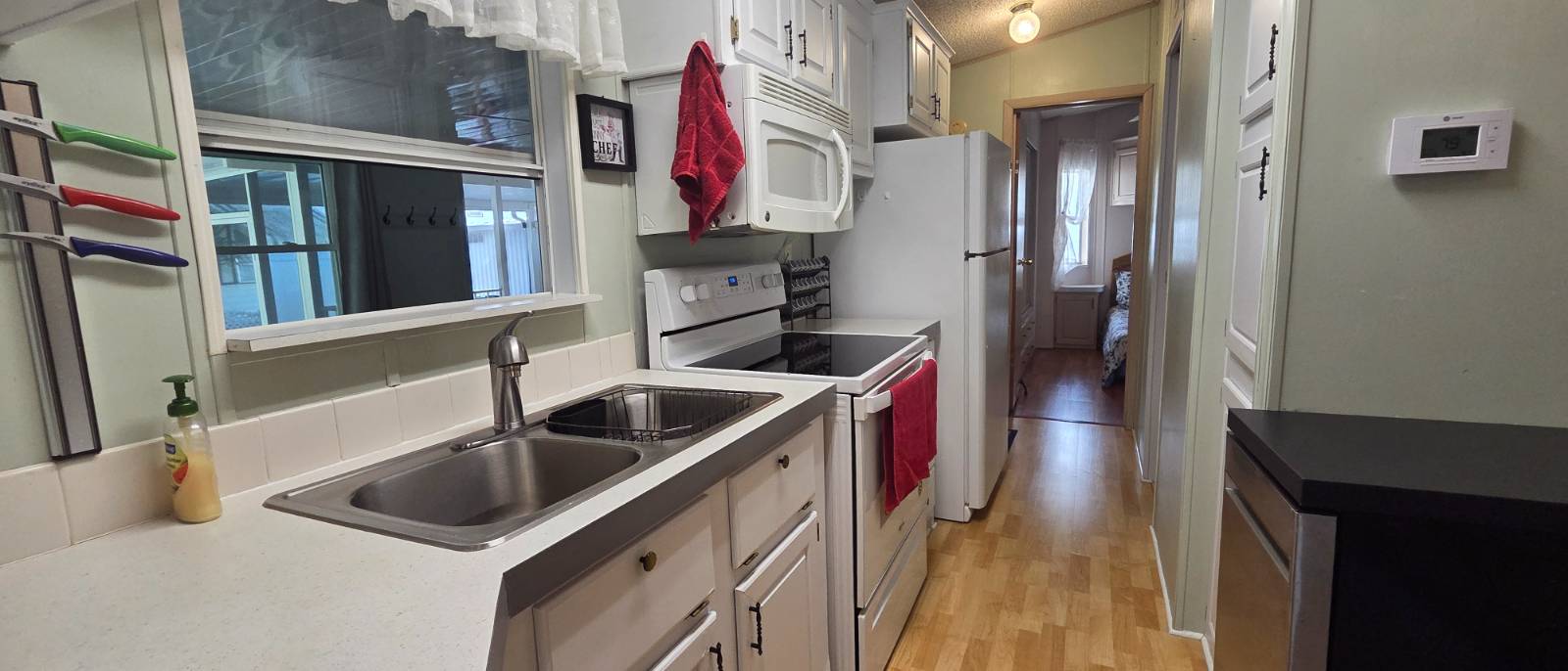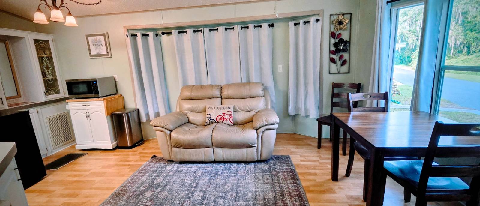 COMMUNITY: Welcome to Holiday RV Village a sought after fun in the sun resort community. 55 plus gated community sitting on 200 acres, complete with 2 pools, private Marina with Chain of Lakes access, planned activities, onsite cafe, pet friendly 2 dog max and a ton of Resort style amenities. Close to Disney, local springs, beaches and many other local attractions. FEATURES: BRAND NEW ROOF over the ENTIRE HOME in 2025! 11x20 carport plus parking in the back, 11x23 screen room with a tri-door, LARGE one level addition, Laundry is indoors in its own separate room. Estimated 914 square feet with potential for second bedroom. Central heat and air 2019. BENEFITS: Desired WEST 3 side on the outer circle, quiet serene setting with a view of untouched Florida across the street. Coming furnished for an easy move! Well maintained by current owners! Lifestyle fee includes water, sewer and trash and is below local average!!!