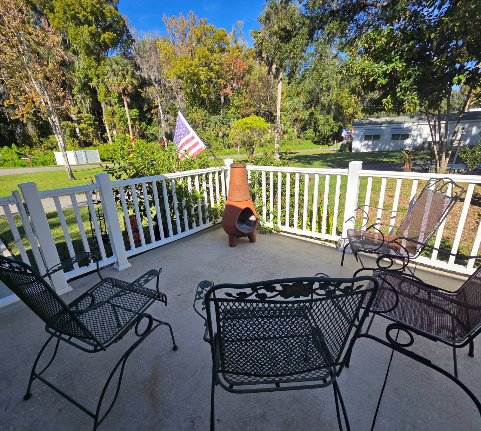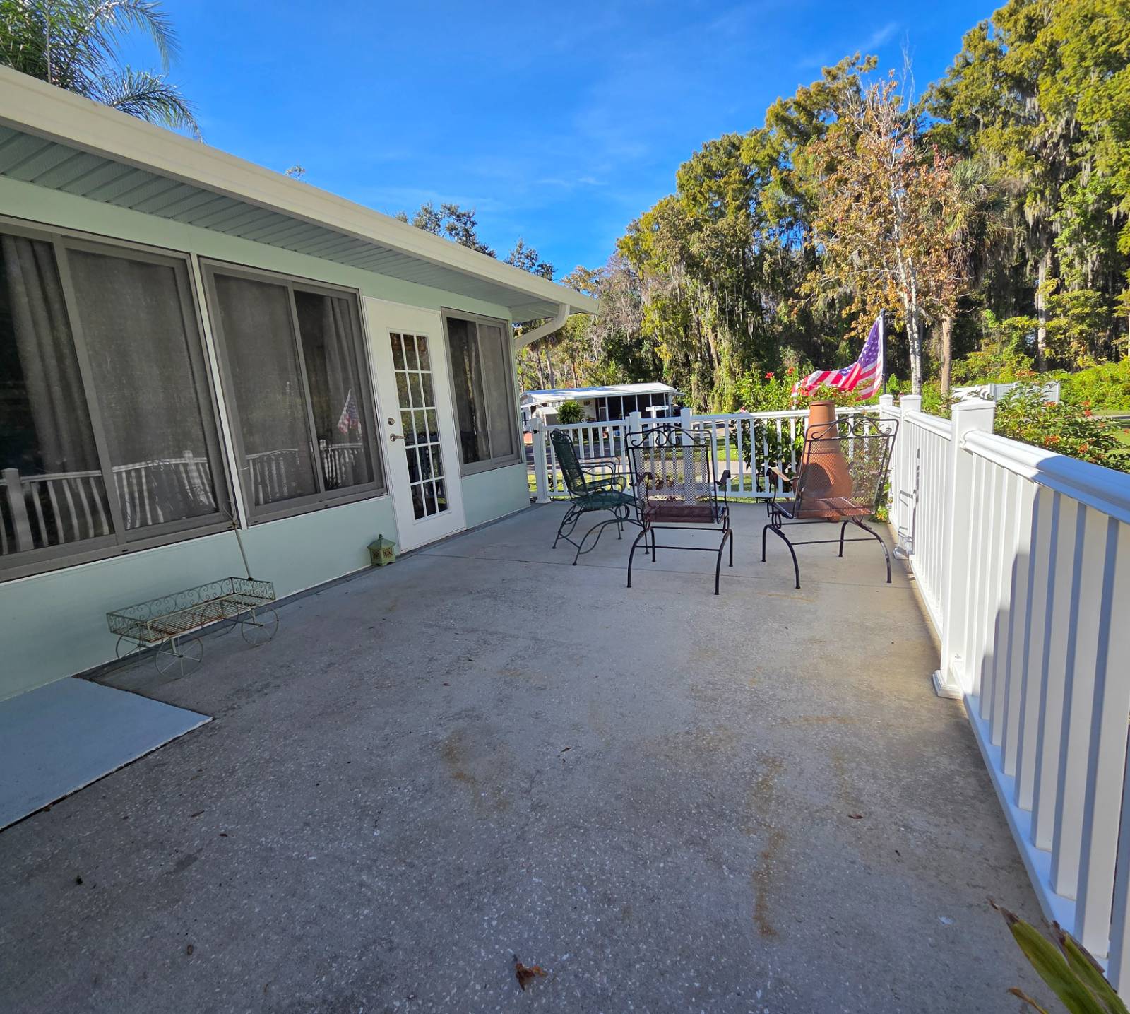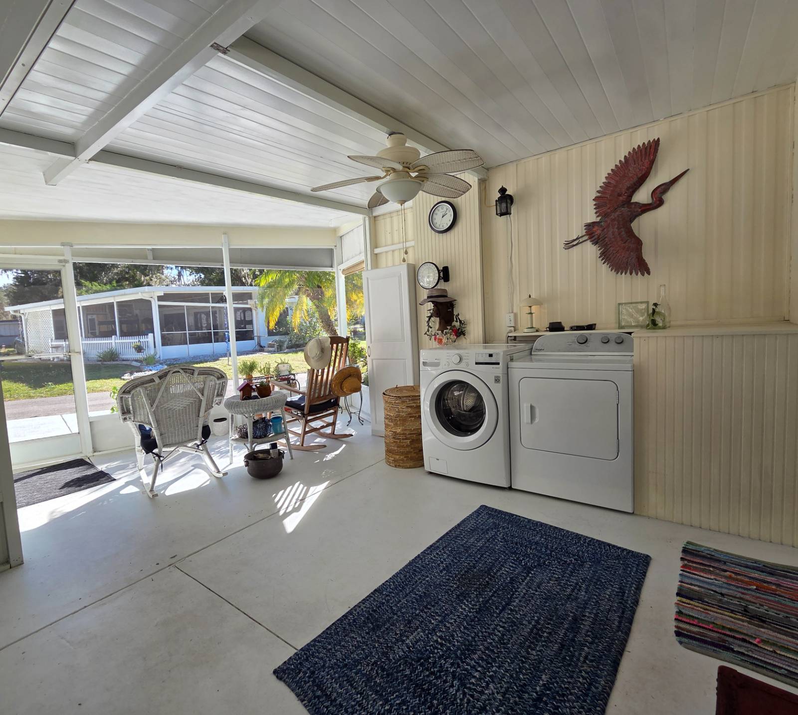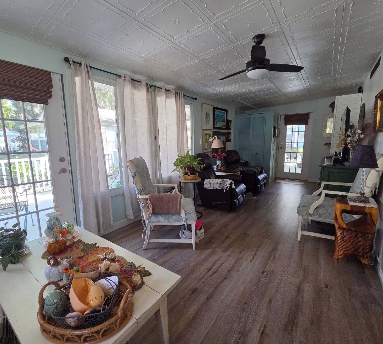 COMMUNITY: Welcome to Holiday RV Village a sought after fun in the sun resort community. 55 plus gated community sitting on 200 acres, complete with 2 pools, private Marina with Chain of Lakes access, planned activities, onsite cafe, pet friendly 2 dog max and a ton of Resort style amenities. Close to Disney, local springs, beaches and many other local attractions. FEATURES: Kitchen remodel, soft close cabinets that have a brushed antique finish, tile backsplash, Quartz composite counters, deep ss sink, a retro oven and recess lighting. Creative storage throughout, such as a custom pantry with a pull-out area for a toaster oven or mixer and a built-in lazy Susan, The bathroom has been cleverly reconfigured to include a separate shower room with step in shower and water closet, detailed insulated ceiling tiles. Upgraded flooring through-out. Carport, Screen Room and porch area. Most windows have been upgraded. Upgraded Plumbing! BENEFITS: Rare Find! High end finishes with remodel to provide piece of mind, Beautiful view of nature on a corner lot, walking distance to the water. Unique one of a kind home which is move in ready, nice storage space both inside and out. Current owners take pride in ownership! Lifestyle fee includes water, sewer and trash and is below local average!!!