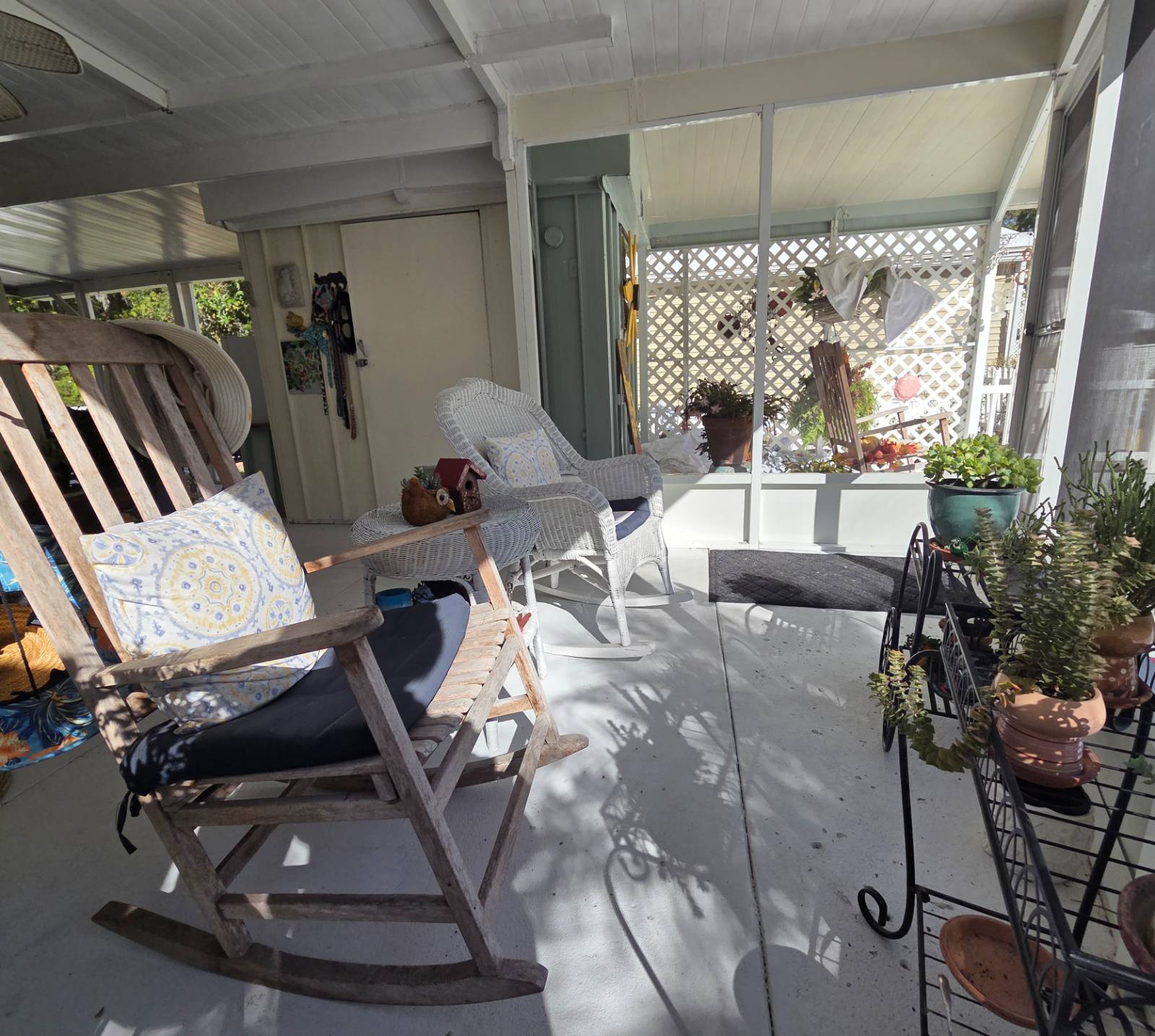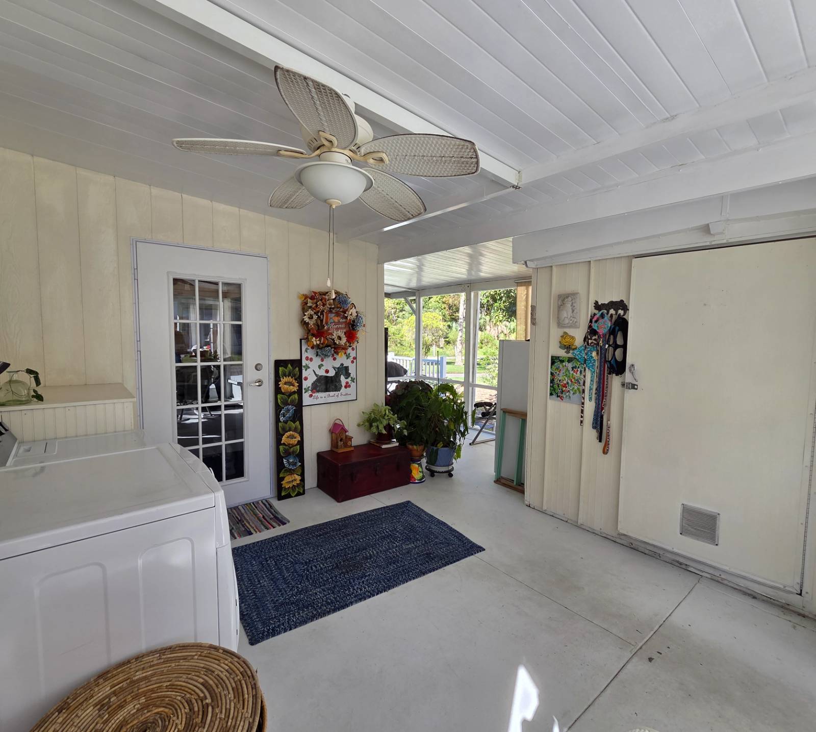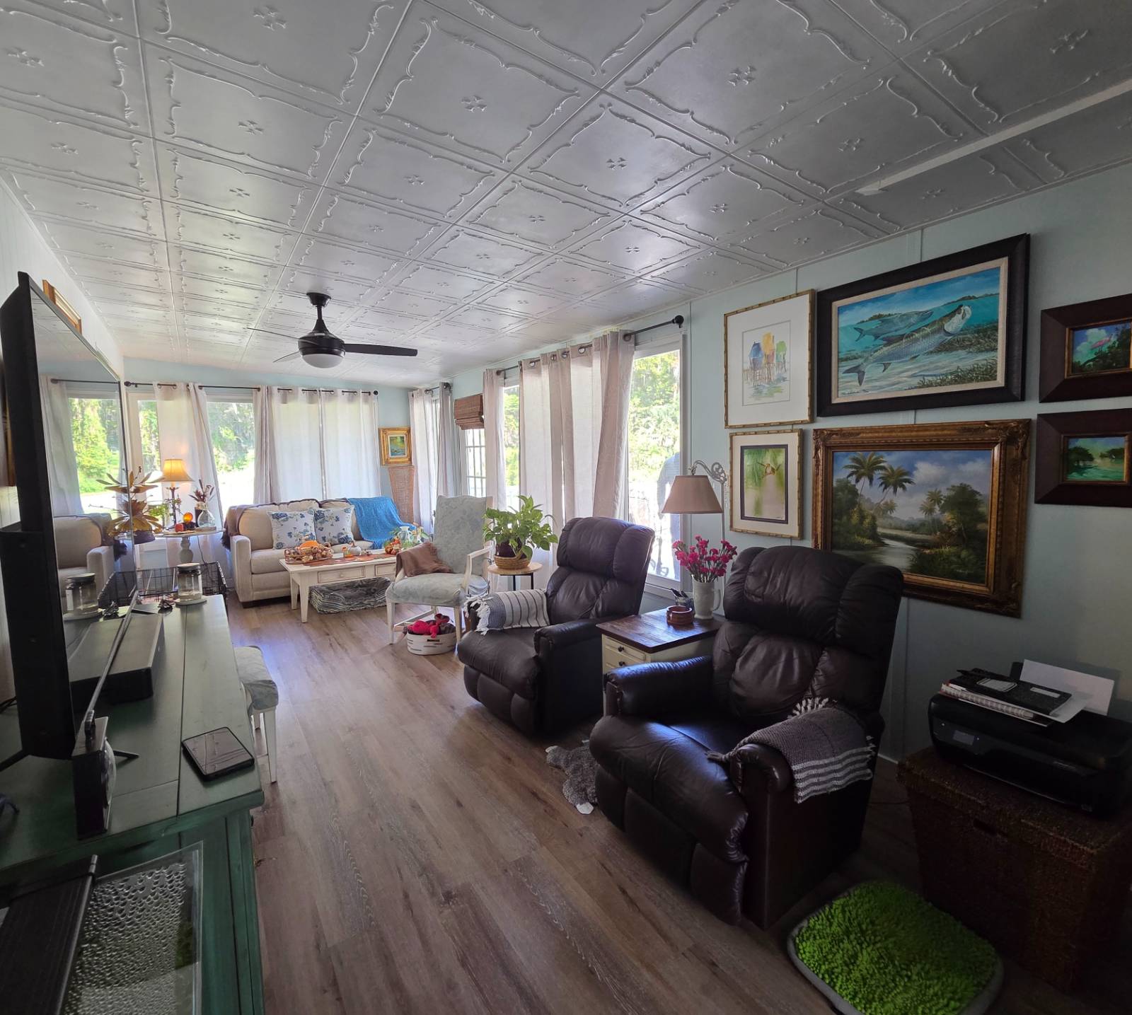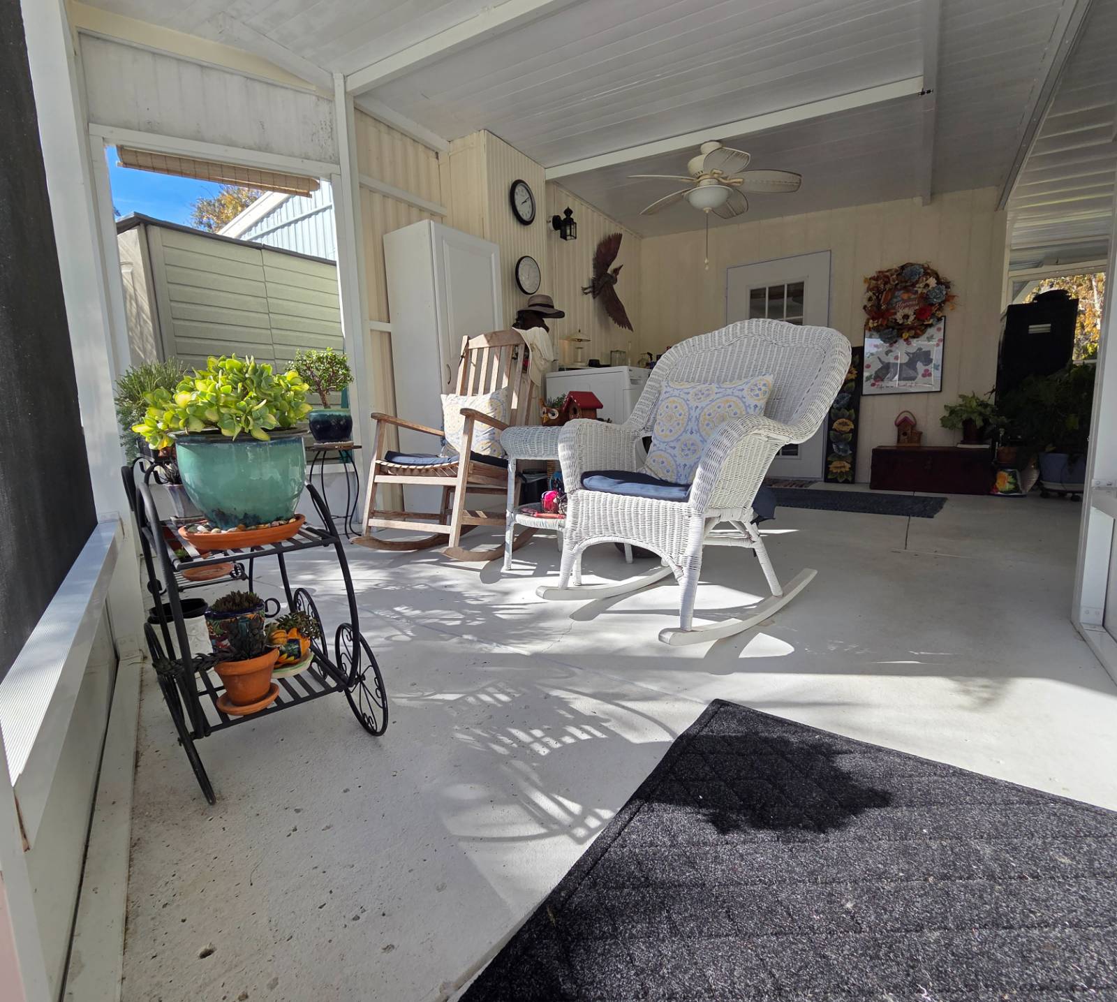 COMMUNITY: Welcome to Holiday RV Village a sought after fun in the sun resort community. 55 plus gated community sitting on 200 acres, complete with 2 pools, private Marina with Chain of Lakes access, planned activities, onsite cafe, pet friendly 2 dog max and a ton of Resort style amenities. Close to Disney, local springs, beaches and many other local attractions. FEATURES: Kitchen remodel, soft close cabinets that have a brushed antique finish, tile backsplash, Quartz composite counters, deep ss sink, a retro oven and recess lighting. Creative storage throughout, such as a custom pantry with a pull-out area for a toaster oven or mixer and a built-in lazy Susan, The bathroom has been cleverly reconfigured to include a separate shower room with step in shower and water closet, detailed insulated ceiling tiles. Upgraded flooring through-out. Carport, Screen Room and porch area. Most windows have been upgraded. Upgraded Plumbing! BENEFITS: Rare Find! High end finishes with remodel to provide piece of mind, Beautiful view of nature on a corner lot, walking distance to the water. Unique one of a kind home which is move in ready, nice storage space both inside and out. Current owners take pride in ownership! Lifestyle fee includes water, sewer and trash and is below local average!!!