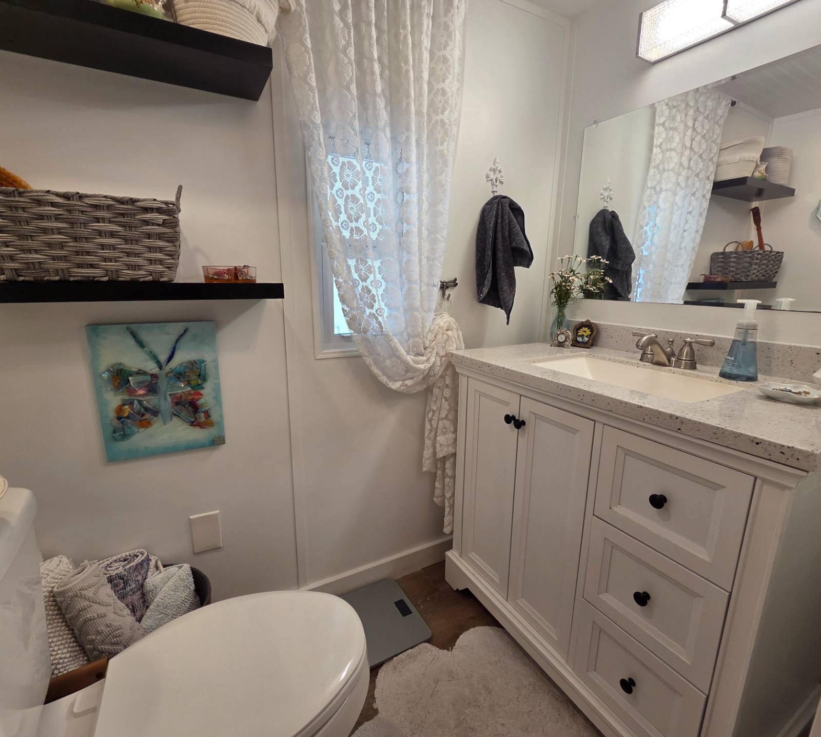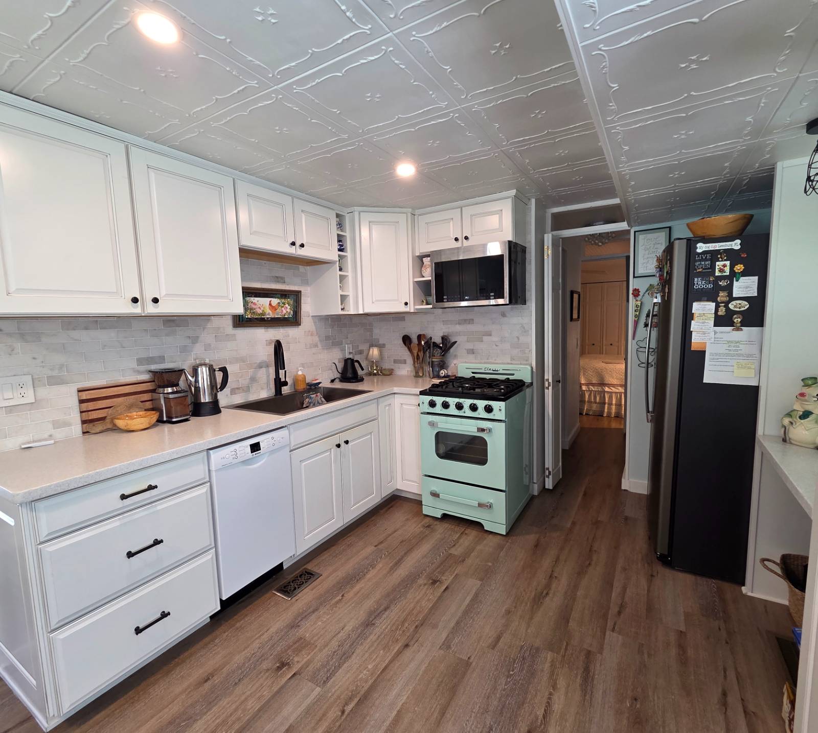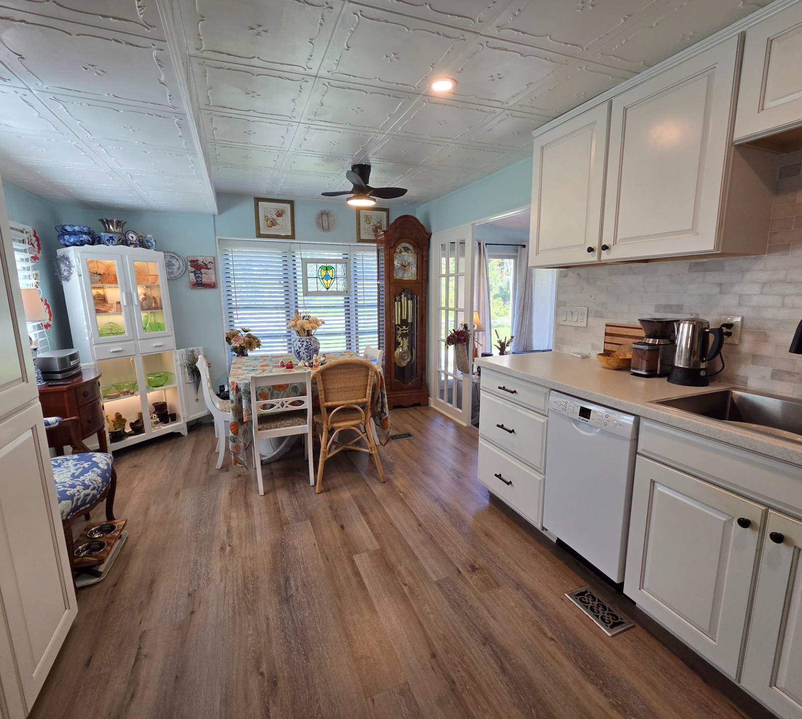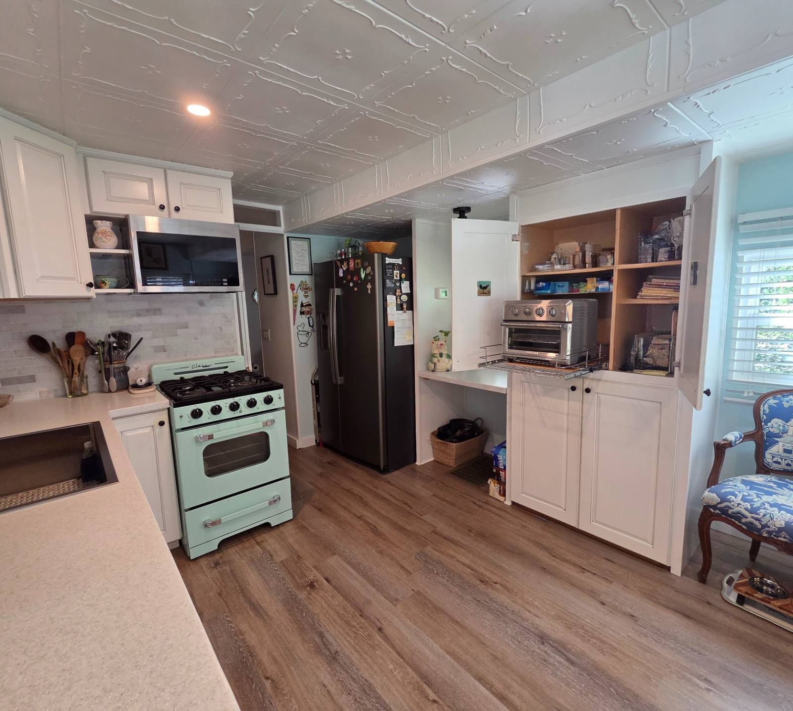 COMMUNITY: Welcome to Holiday RV Village a sought after fun in the sun resort community. 55 plus gated community sitting on 200 acres, complete with 2 pools, private Marina with Chain of Lakes access, planned activities, onsite cafe, pet friendly 2 dog max and a ton of Resort style amenities. Close to Disney, local springs, beaches and many other local attractions. FEATURES: Kitchen remodel, soft close cabinets that have a brushed antique finish, tile backsplash, Quartz composite counters, deep ss sink, a retro oven and recess lighting. Creative storage throughout, such as a custom pantry with a pull-out area for a toaster oven or mixer and a built-in lazy Susan, The bathroom has been cleverly reconfigured to include a separate shower room with step in shower and water closet, detailed insulated ceiling tiles. Upgraded flooring through-out. Carport, Screen Room and porch area. Most windows have been upgraded. Upgraded Plumbing! BENEFITS: Rare Find! High end finishes with remodel to provide piece of mind, Beautiful view of nature on a corner lot, walking distance to the water. Unique one of a kind home which is move in ready, nice storage space both inside and out. Current owners take pride in ownership! Lifestyle fee includes water, sewer and trash and is below local average!!!