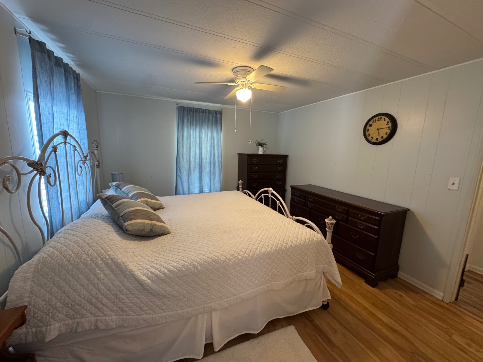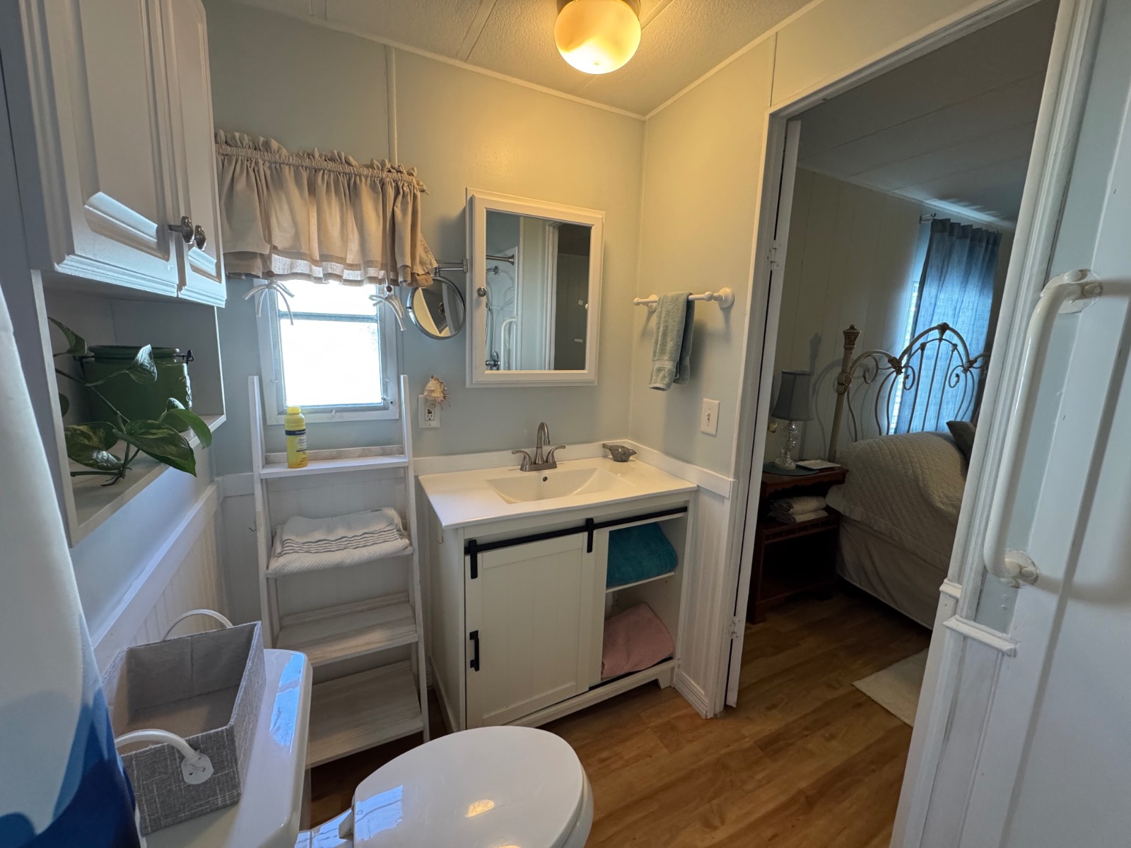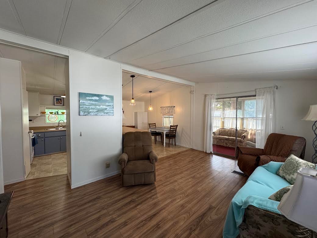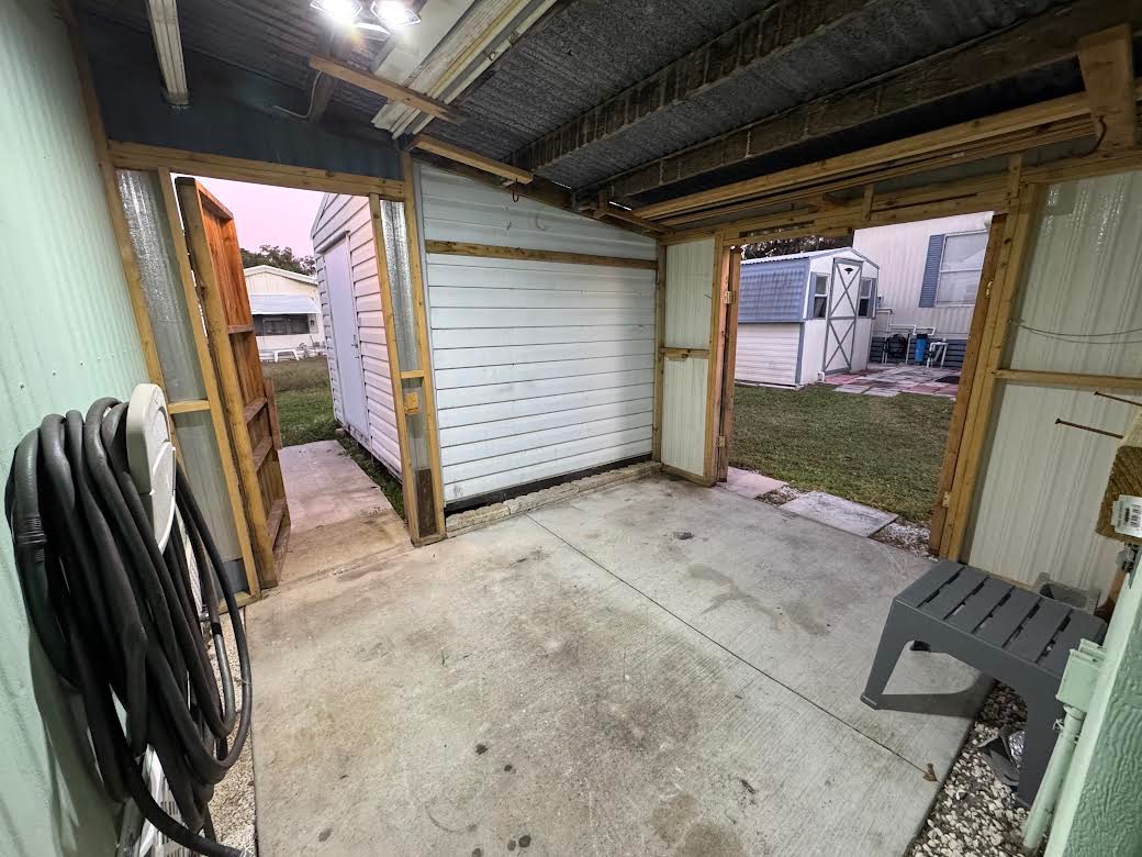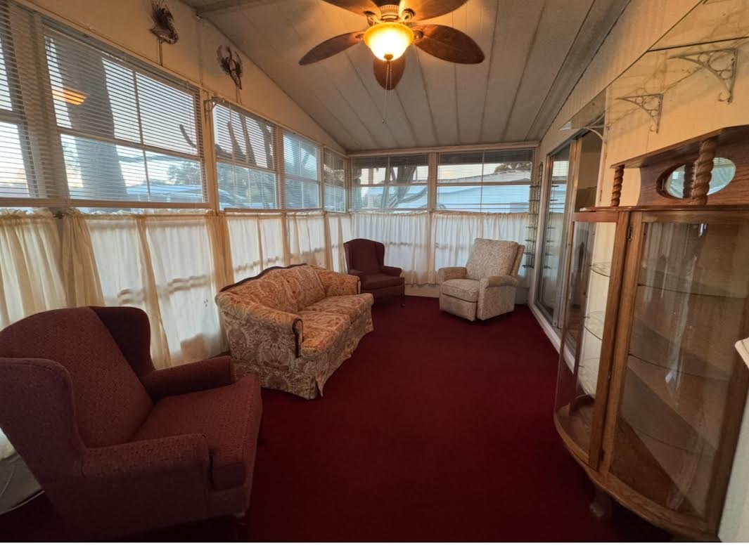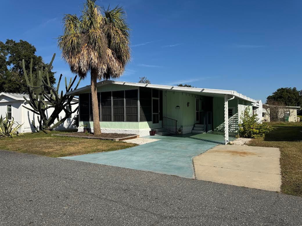 Welcome to this cozy maintained home perfect for enjoying Florida's outdoor lifestyle. A highlight here is the large front screen room adding on 160 more sq. feet perfect for relaxing, happy hour and pink sunset skies! You will also appreciate the extra front parking space for a golf cart and the washer and dryer located in the carport shed. For hobbyists or those wanting extra storage this home has a 9x11 workshop and a 10x10 breezeway for lawn equipment or sporting gear. Inside the home is open and spacious with cathedral ceilings and bright windows. An updated sliding barn door to the primary bath with a walk in shower, new vanity and a fresh modern look.There is plenty of counter space in the kitchen for easy entertaining and lots of cabinets and a pantry. Located in a friendly activity filled neighborhood you will find friends and plenty to do. So close to shopping and dining and health care you can take your golf cart! The Villages Brownwood Square offers live free music nightly and fresh market on Saturday mornings. A hop to the Turnpike and I75 will have you to the Orlando Airport or Tampa in an hour. Parkwood Communities has access to 4 clubhouses, 4 pools and many activities. The community fee is $550 per month and includes water and trash. Call agent today for this ONE!
