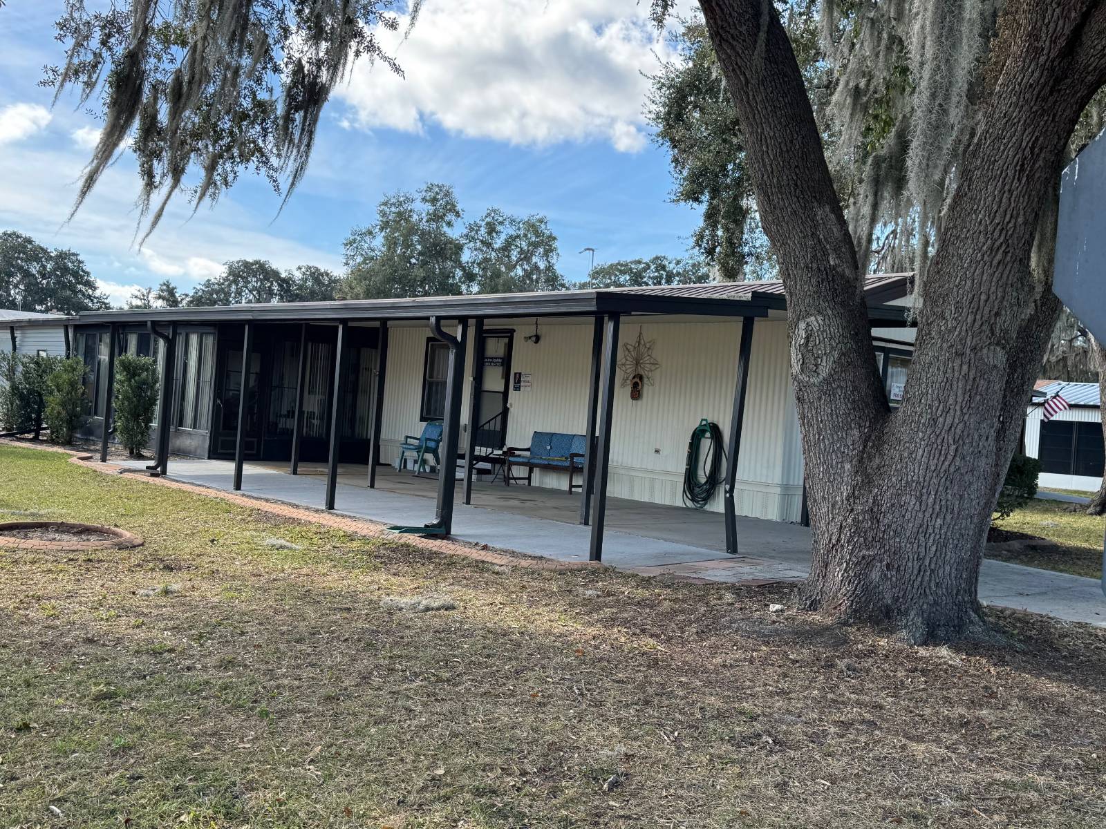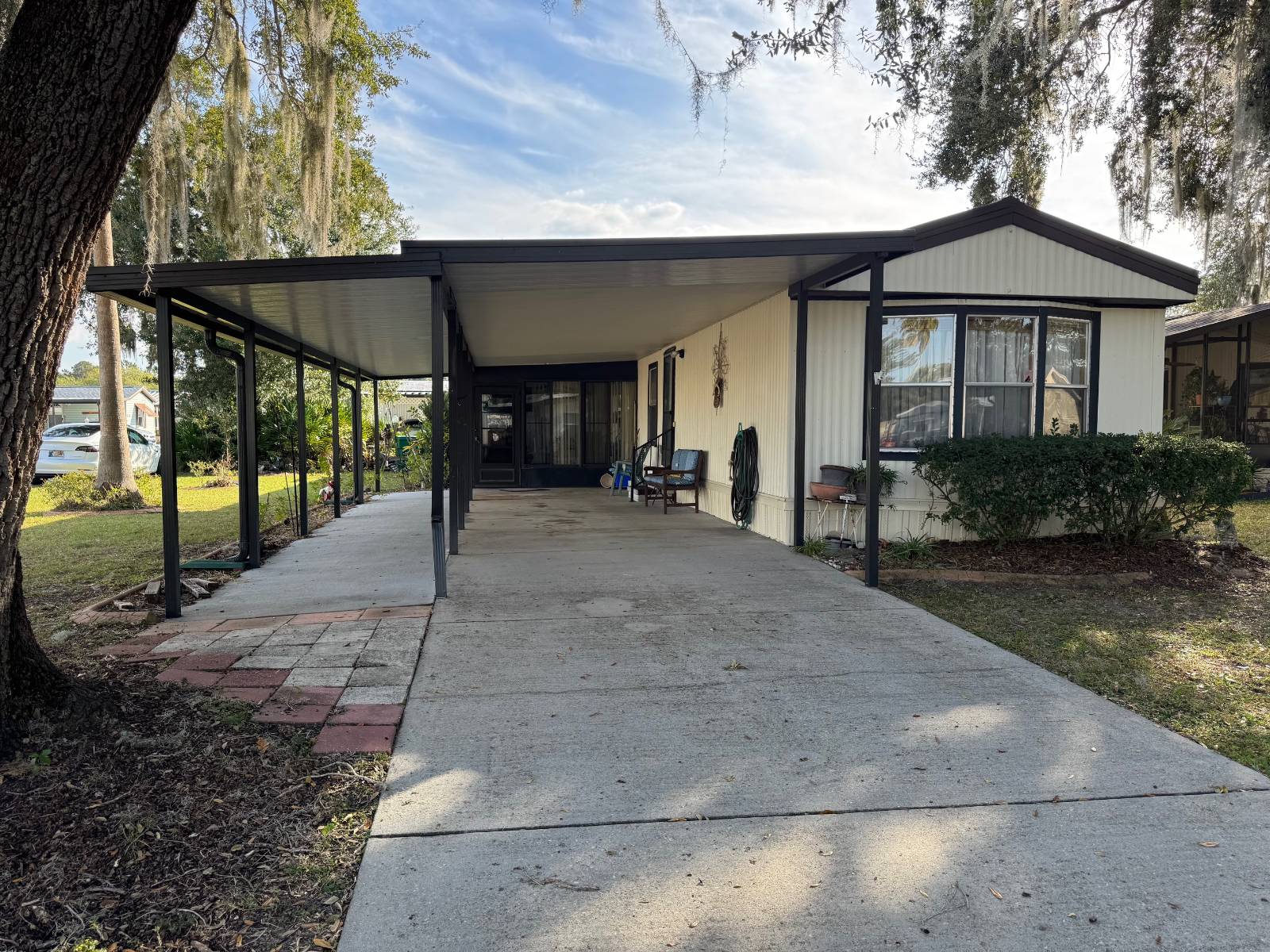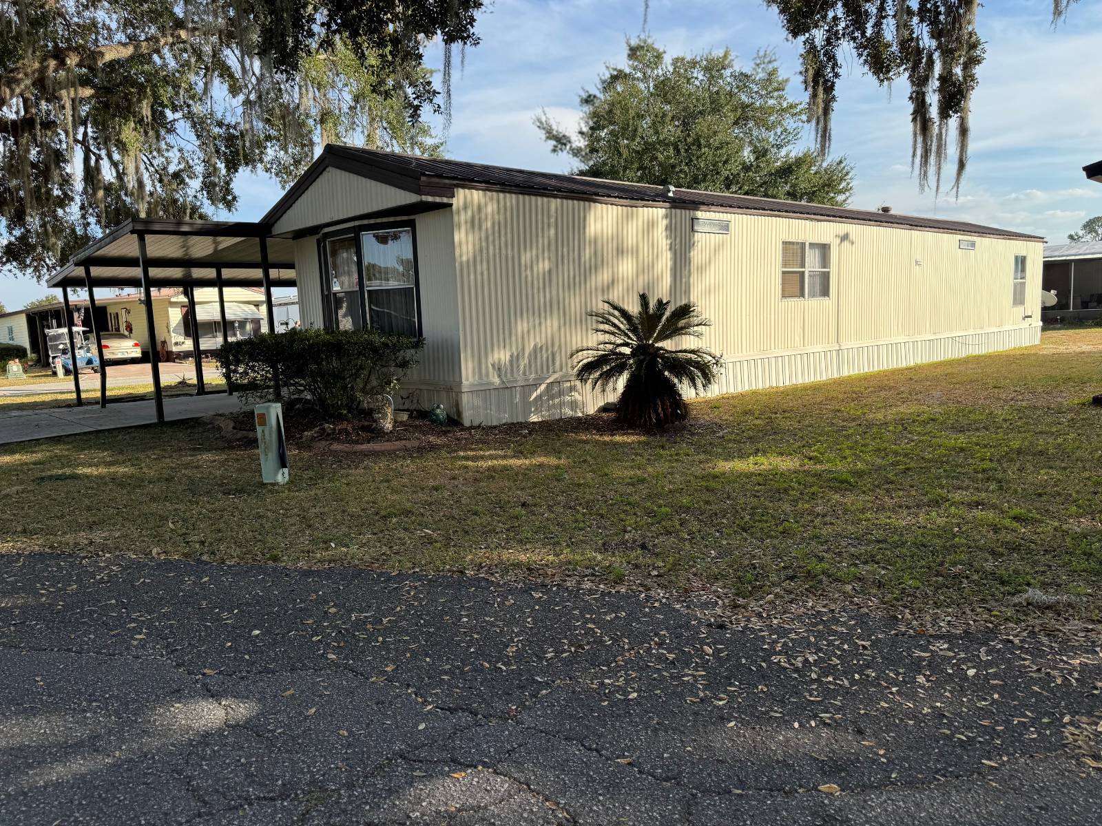 Welcome to Parkwood Communities a 55+ age-qualified active and vibrant community, where you can find yourself in your dream home. This 2 bed, 2 bath home for features 924.00 sq ft of beautifully designed living space. Located in Wildwood, this property offers the perfect blend of modern amenities and timeless charm. The spacious kitchen boasts a dinette and center island, perfect for both everyday living and entertaining. The primary suite offers a peaceful retreat, complete with a large closet. The additional bedroom provide versatility for guests, a home office, or a growing family. Residents enjoy access to a range of premium amenities including clubhouse, fitness center, pools, billiards, and shuffleboard. Conveniently situated near The Villages Brownwood Square, you'll have everything you need. Perfect for an investent property or second home. As a bonus, there is an oversized workshop or man cave. This friendly community has it all.The price reflects the condition of the the property and sold in it' "as is" condition. No repairs will be made.